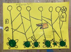 シャボン玉のパステル画